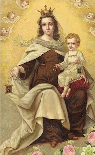 No dia 16 de julho de 1251, São Simão Stock suplicava à Nossa Senhora ajuda para evitar a extinção da Ordem Carmelitana, da qual era o Prior Geral. Enquanto ele rezava “Flor do Carmelo, vide florida. Esplendor do Céu, Virgem Mãe incomparável. Doce Mãe, mas sempre virgem. Sede propícia aos carmelitas. Ó Estrela do mar”, A Virgem apareceu-lhe, trazendo o Escapulário nas mãos e disse: “Filho diletíssimo, recebe o Escapulário da tua Ordem, sinal especial de minha amizade fraterna, privilégio para ti e todos os carmelitas. Aqueles que morrerem com este Escapulário não padecerão o fogo do Inferno. É sinal de salvação, amparo e proteção nos perigos, e aliança de paz para sempre”.