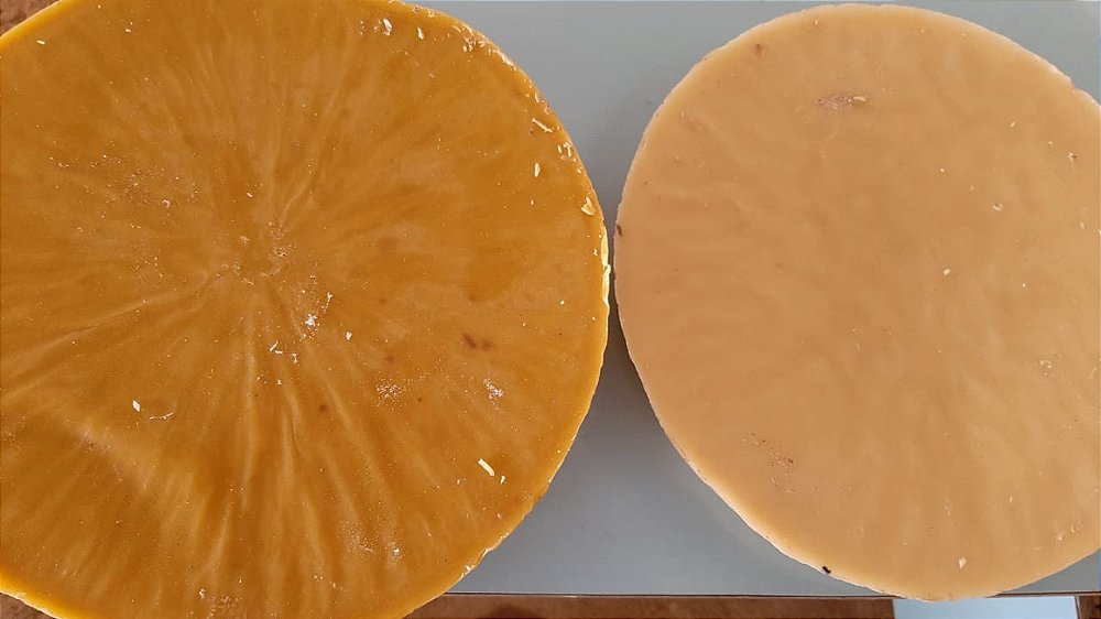 Por se tratar de um produto natural, a coloração da cera sofre alterações, de acordo com a florada, podendo passar do tom amarronzado para o tom amarelo.